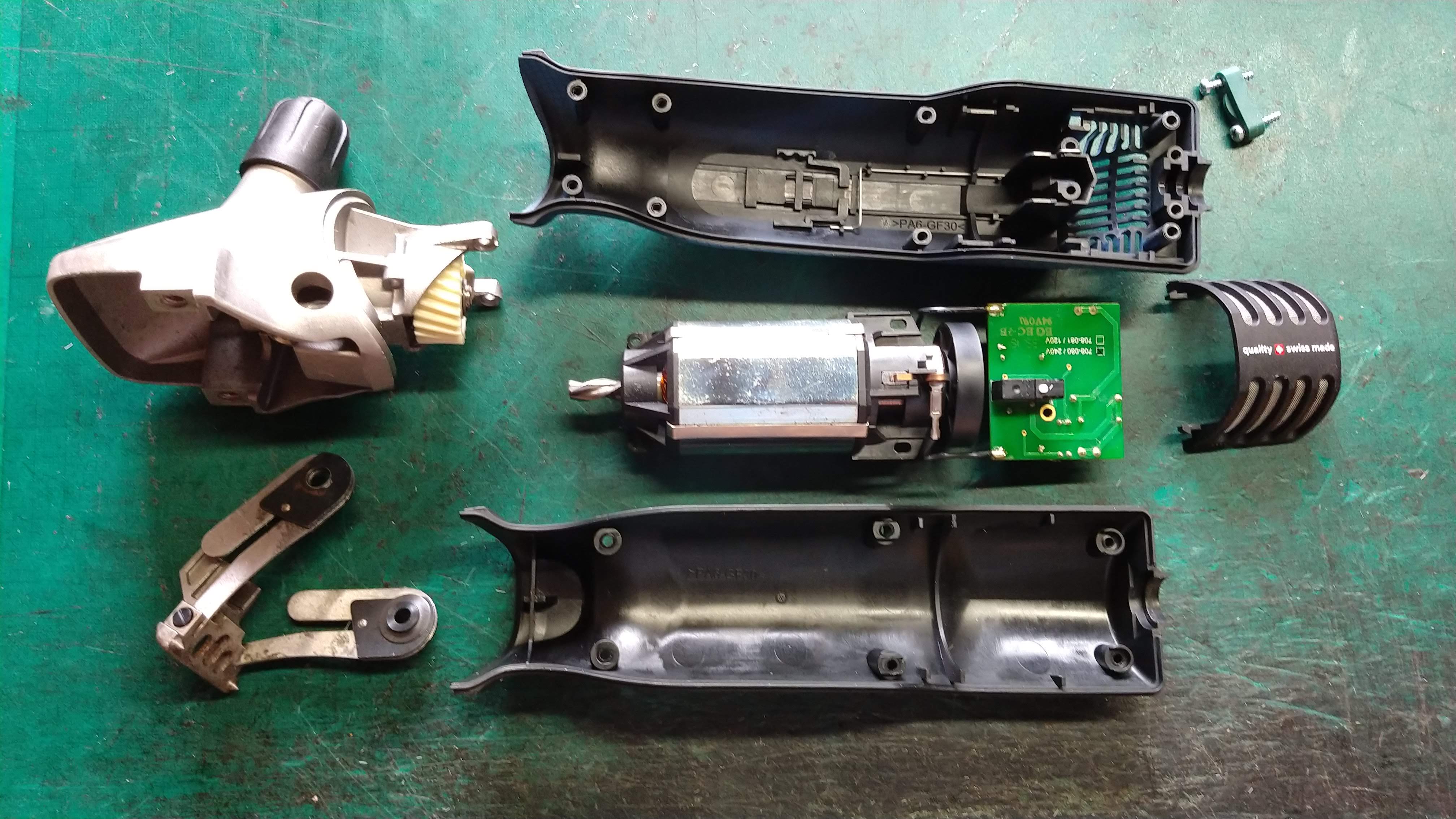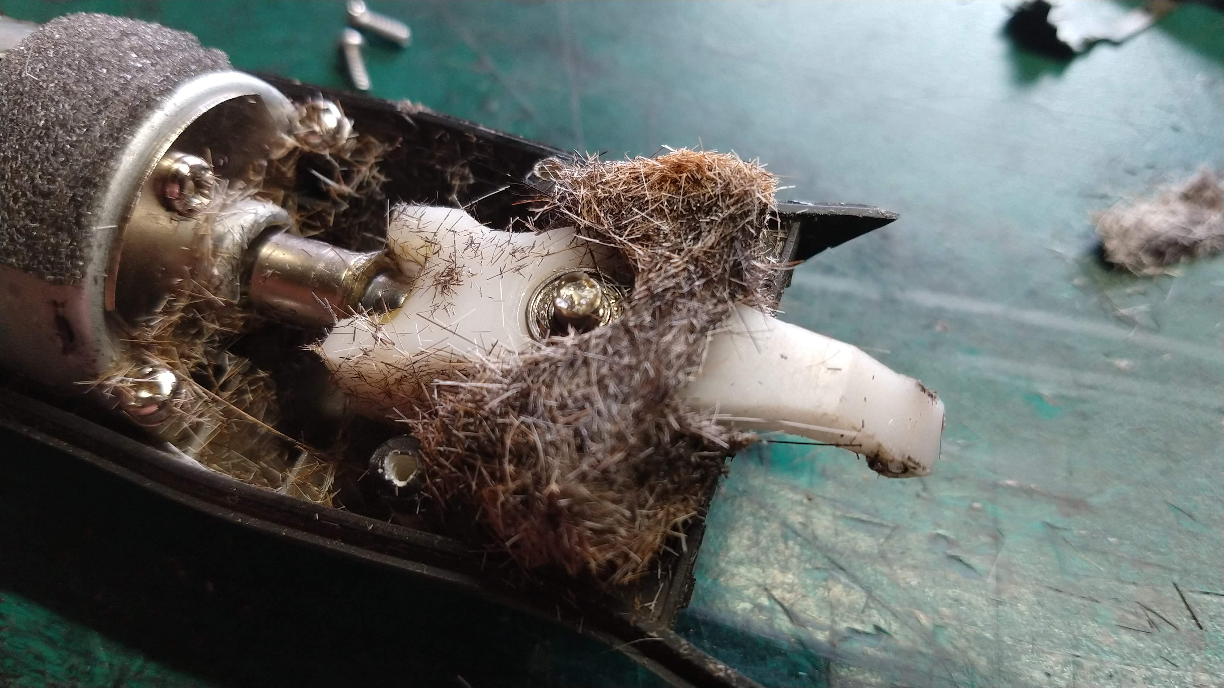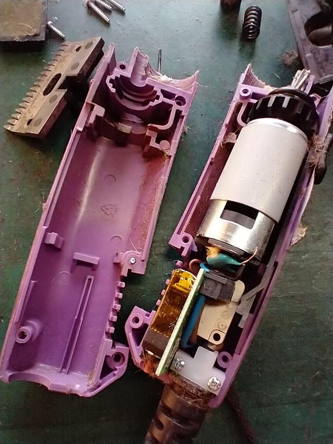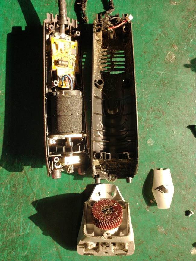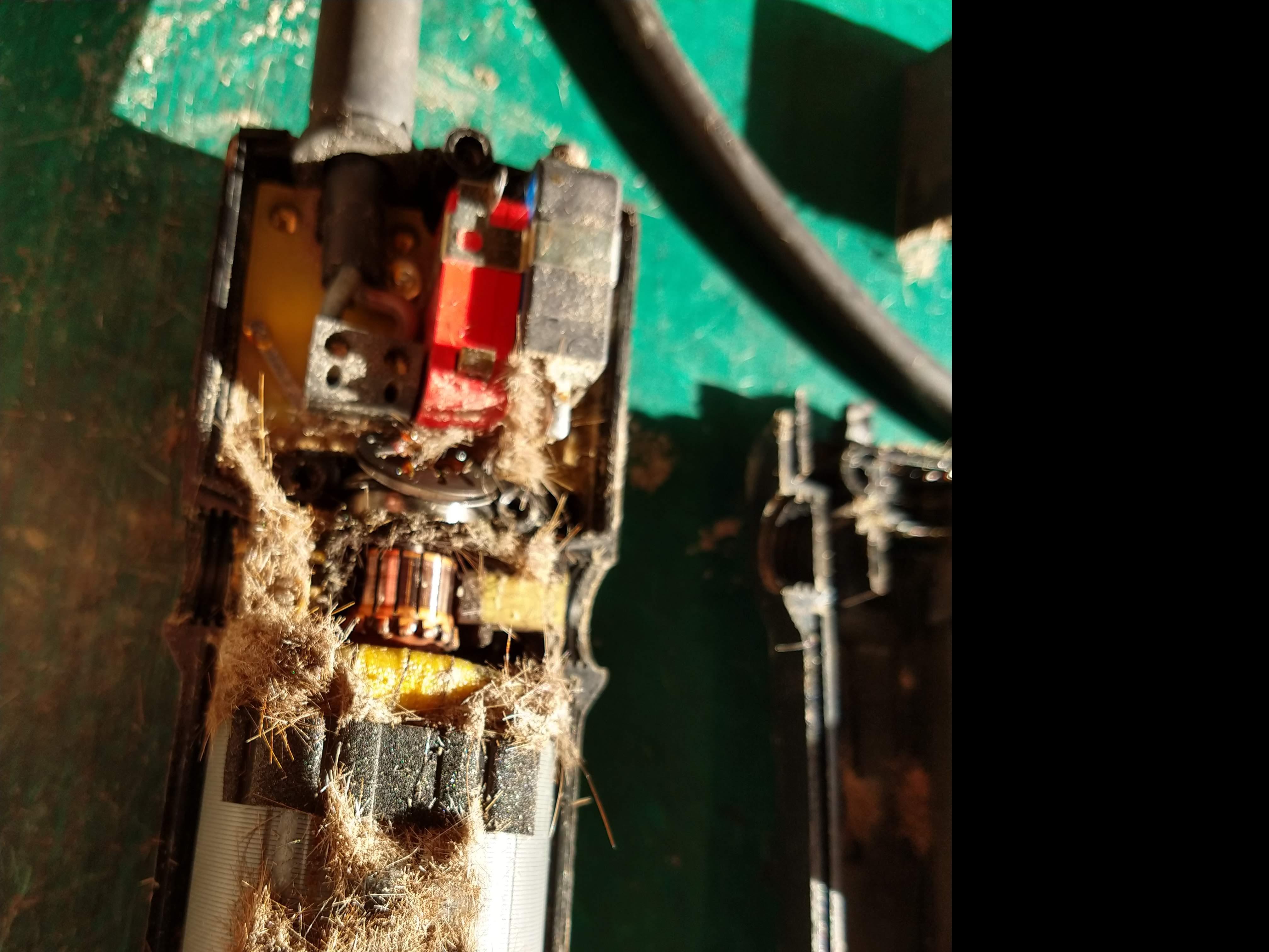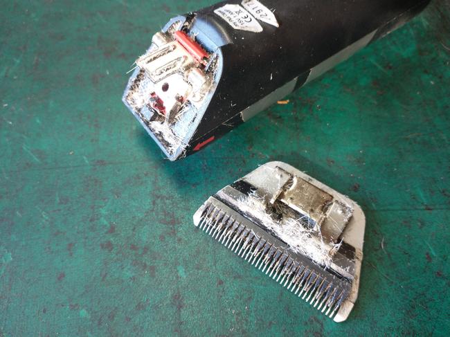 Fairly typical of horse clippers. They are not very old and had been well looked after. The outside and filter was clean but they kept overheating. before dismantling a thorough inspection of the cable and casing is undertaken and the clippers are run up and tested (if they work that is!)