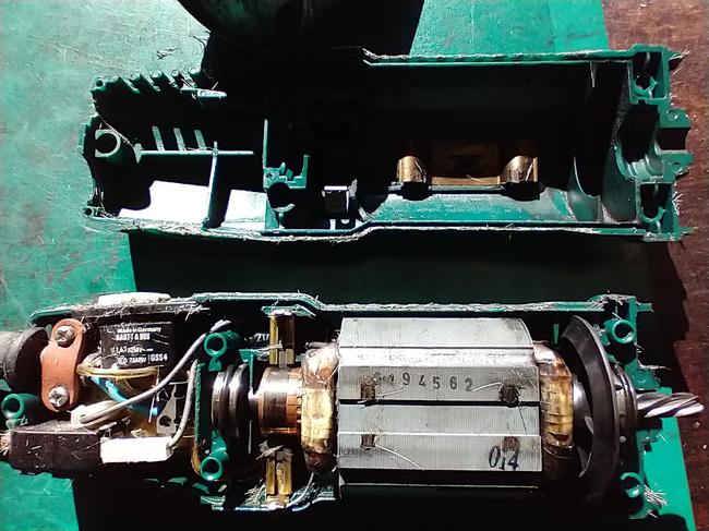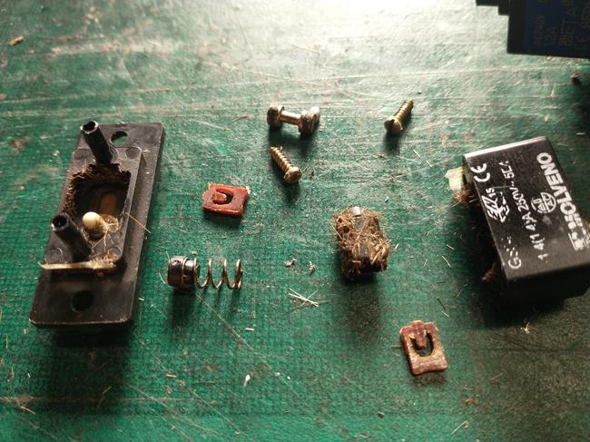 The electrical components are blown clean and brushed with a soft bristle brush to remove all signs of horse hair. The clipper's motor commutator ring on the rotor is cleaned with a petrol soaked cloth removing all signs of carbon residue. All of the remaining parts are degreased and blown dry.
