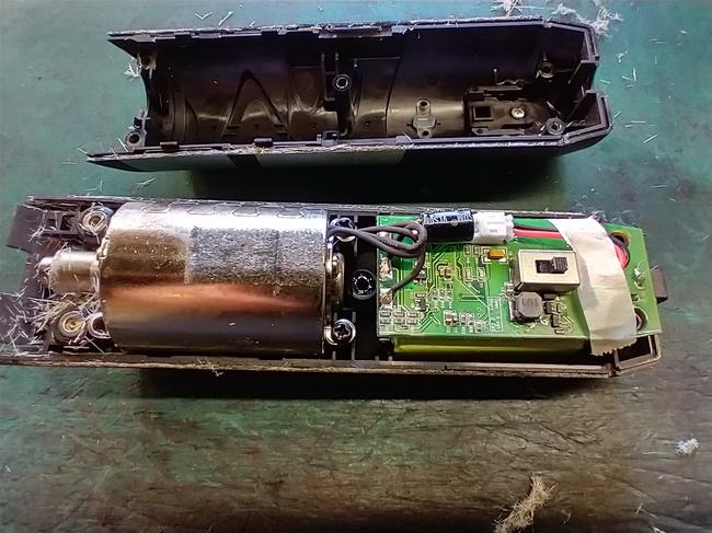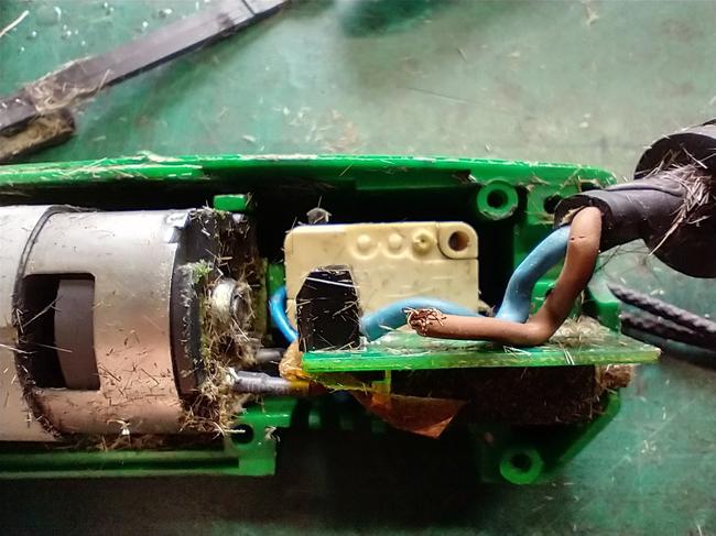 After removing the clipper blades, gearbox and top cover, the amount of horse hair inside the clippers becomes apparent. This will be the cause for the horse clippers overheating. The horse clippers keep the temperature down by a fan which draws air through the air filter, over the circuit board, through the motor and out over the clipper blades to keep them cool. The horse hair trapped within the clipper's casing will block this air flow, and cause the horse clippers to overheat.